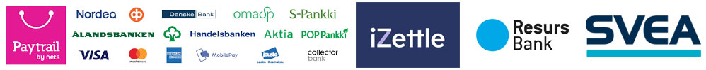 Verkkokaupassamme voit maksaa turvallisesti pankkikortilla, luottokortilla tai verkkopankin kautta (Paytrail Oy).